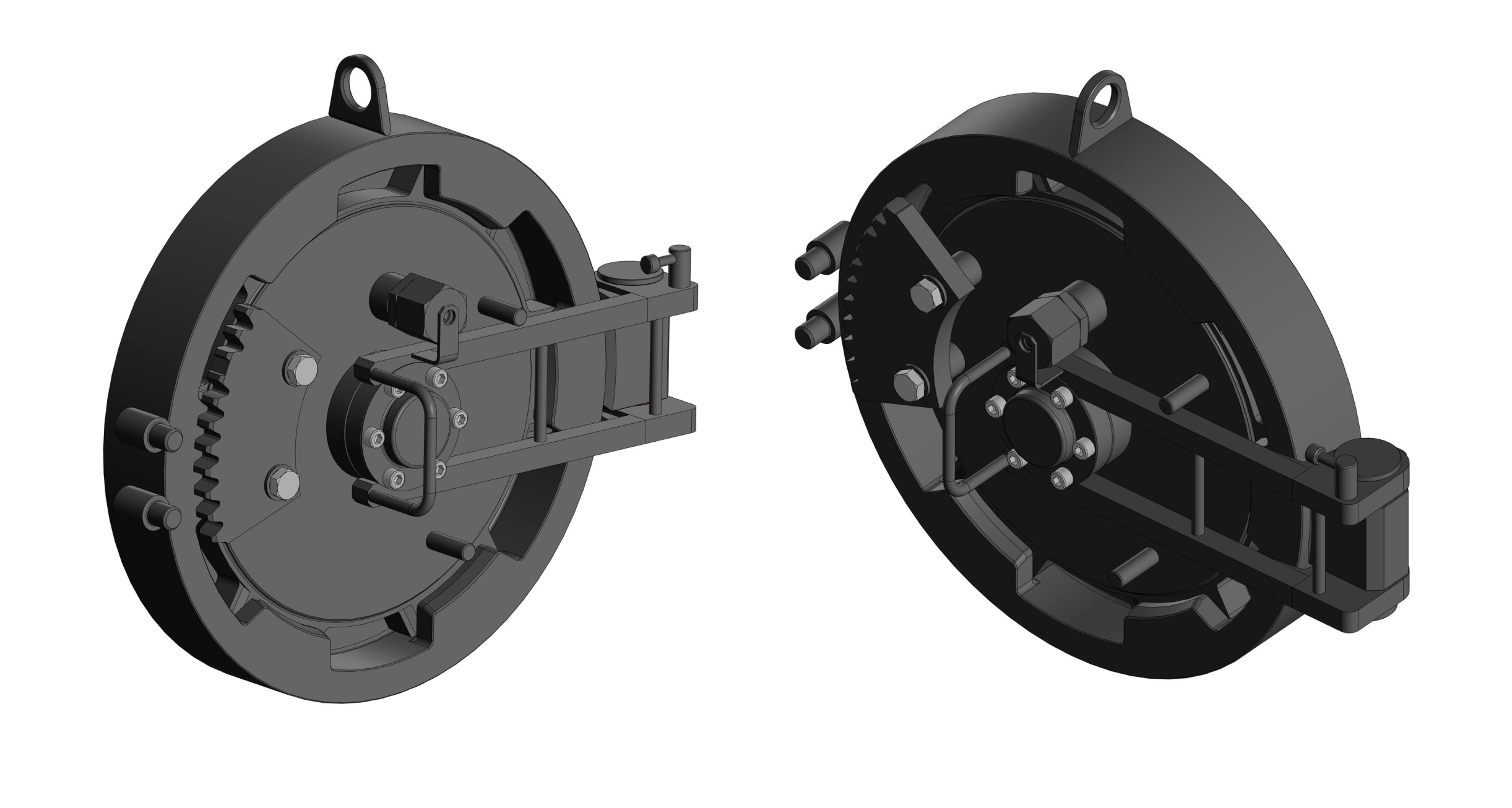 Крепление на одной петле: В отличие от традиционных решений с двумя петлями, наша конструкция использует одну петлю, установленную на корпусе. Откидной рычаг охватывает её и фиксируется осью.